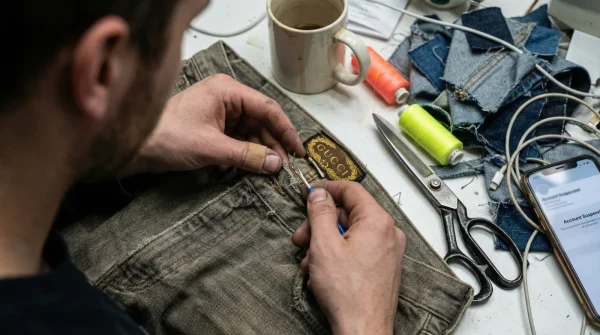 After the fabric has relaxed, try the trousers on with your usual footwear. You will immediately notice the fabric falling closer to the body, creating a much leaner, more elegant silhouette. Pin the fabric at your desired length—ideally with a slight half-break over the shoe. Hand-sew the new hem using a catch-stitch and a lightweight cotton thread, ensuring the needle only catches a single thread of the outer fabric to keep the hem invisible and tension-free.