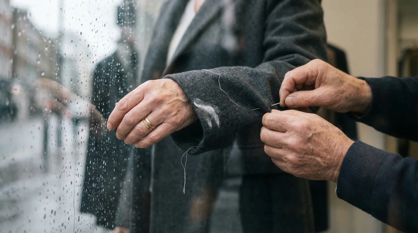 | Button Relocation | Buttons moved proportionally upwards by exactly the same distance the sleeve was shortened. | Leaving buttons too close to the new hem edge, instantly revealing that the coat has been cheaply altered. |