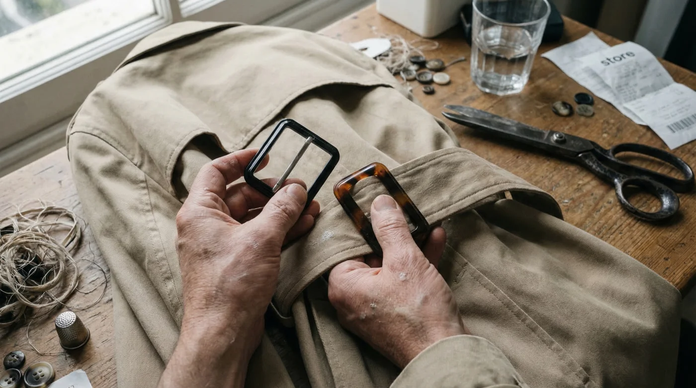The human eye evaluates luxury through microscopic visual cues and tactile feedback, a psychological concept known in design circles as perceptual value weighting. When the visual weight of a garment’s fabric is abruptly disrupted by inferior, lightweight accessories, the entire aesthetic illusion collapses. In the case of affordable outerwear, the primary culprit sabotaging your outfit is almost exclusively the factory-fitted plastic belt fastening. Replacing this single element alters the physical and visual gravity of the piece.