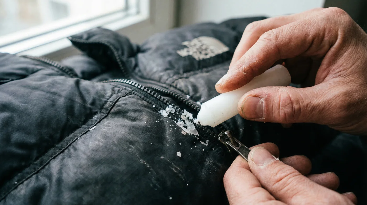 Finally, engage the slider. Pinch the fabric firmly at the base and pull the slider up and down the track 10 to 15 times. This crucial mechanical action distributes the wax evenly inside the hidden internal channel of the slider mechanism itself. If any excess wax shavings remain on the fabric tape, simply wipe them away with a microfibre cloth moistened with a few drops of warm water (approximately 35°C). By permanently integrating this masterclass protocol into your seasonal maintenance routine, you will seamlessly bypass future mechanical failures and ensure your premium outerwear remains flawlessly operational for decades to come.