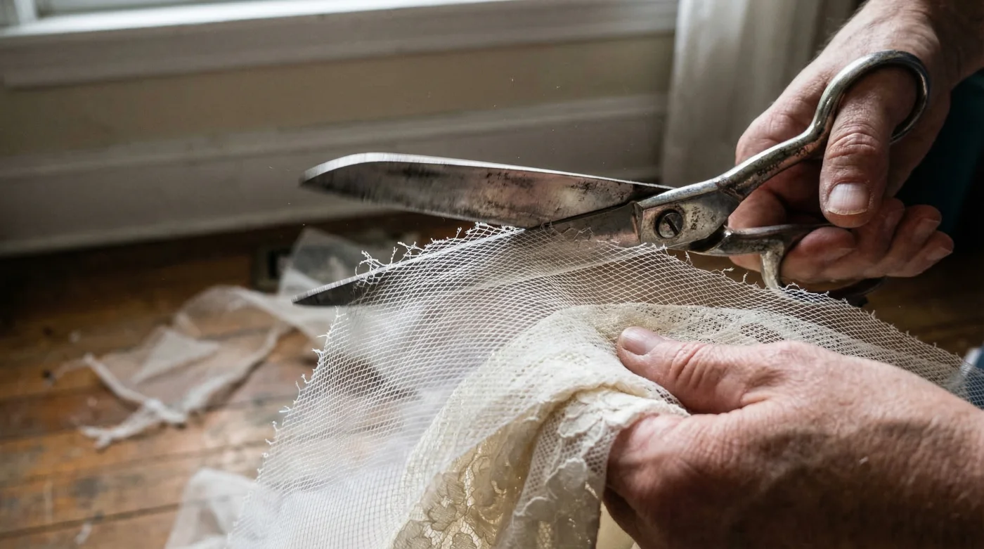 2. The Careful Snip: Using professional-grade dressmaking shears, systematically cut the netting away layer by layer. Work in 10-centimetre sections to maintain control. By removing this layer, you are typically eliminating up to 400 grams of unnecessary weight.