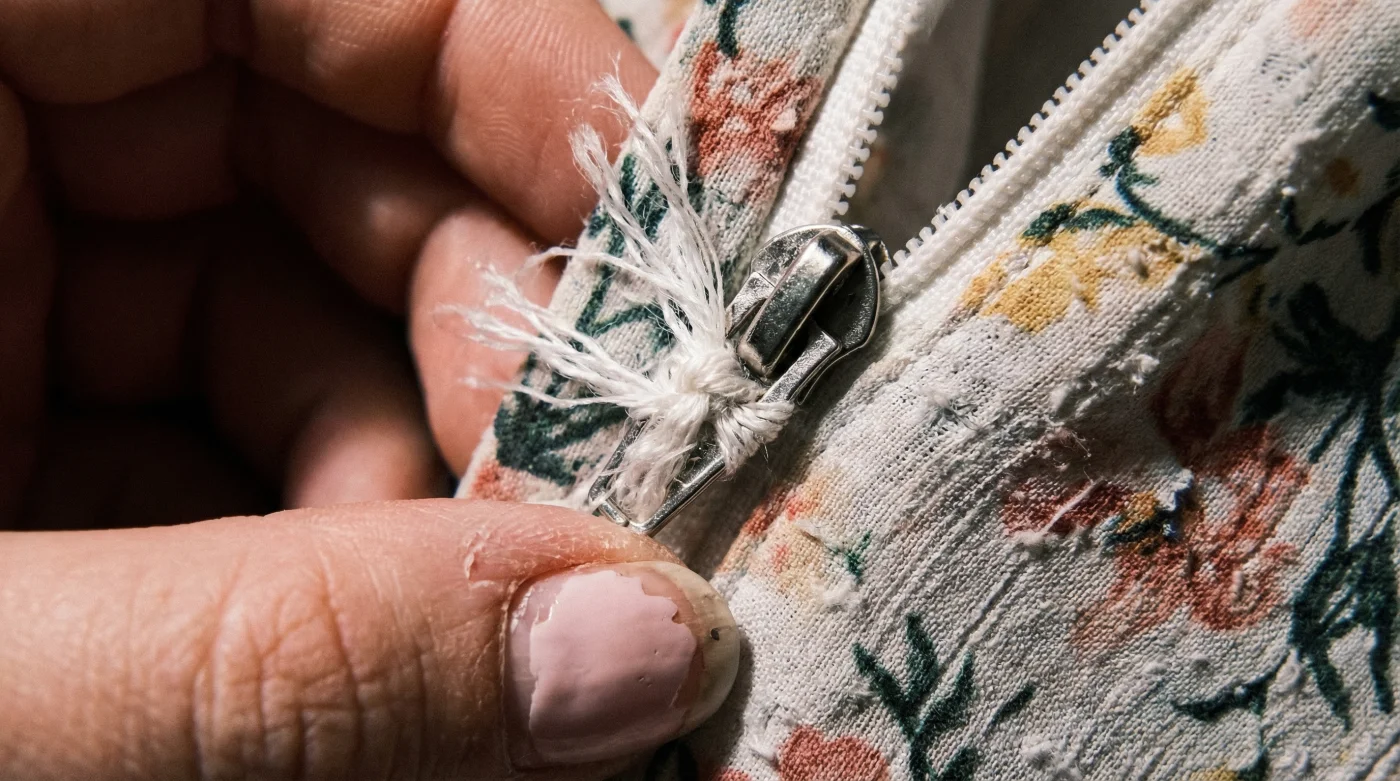 - The Derailed Slider: The metal puller slides off the track entirely due to a lack of ‘stopper’ mechanisms at the top of the fabric.